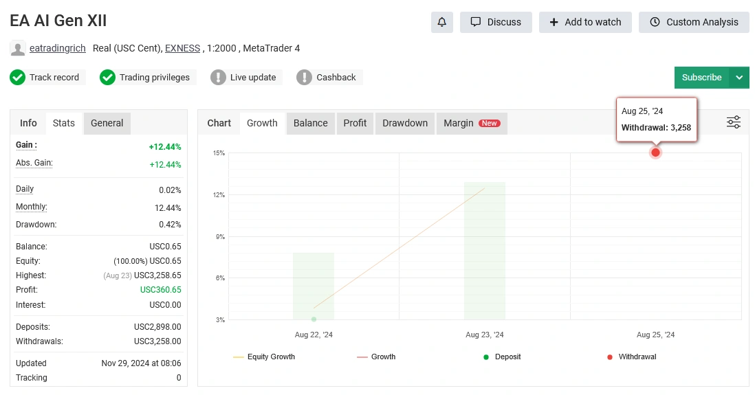 AI Gen XII EA helps manage trades, but you still need to monitor performance and follow sound risk management. If you’re not prepared to do this, it’s better to wait.