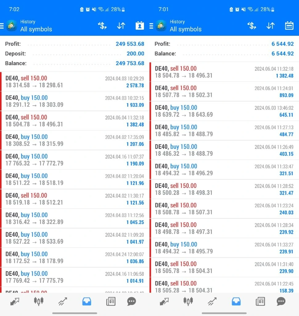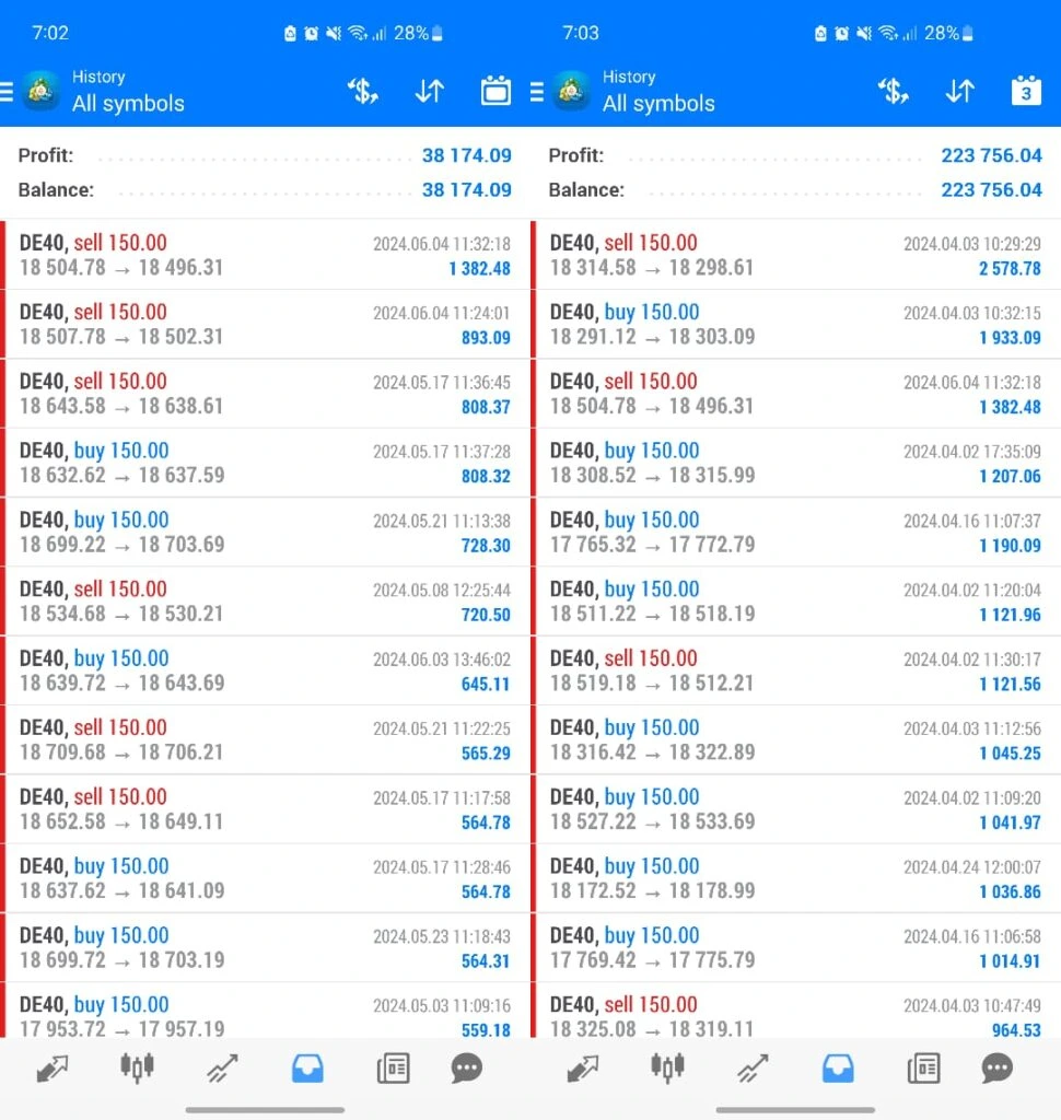 - Verified Trading Results: Real-world performance data highlights profits exceeding $223,000 through systematic DE40 trading. However, historical examples reflect 150.00 lot usage—significantly above the advised conservative setup.