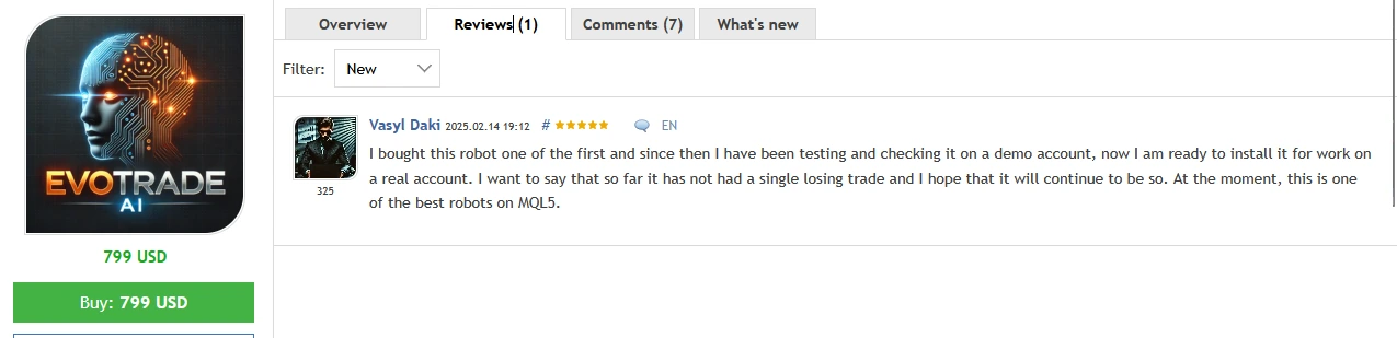 Dolores Martin Munoz is the creator of this product, bringing over two years of experience in MQL5 development. He has worked on several well-known trading tools, including EvoTrade EA MT4, EvoTrade EA MT5, and other expert advisors. Among his creations, EvoTrade EA MT4 stands out as the most successful.