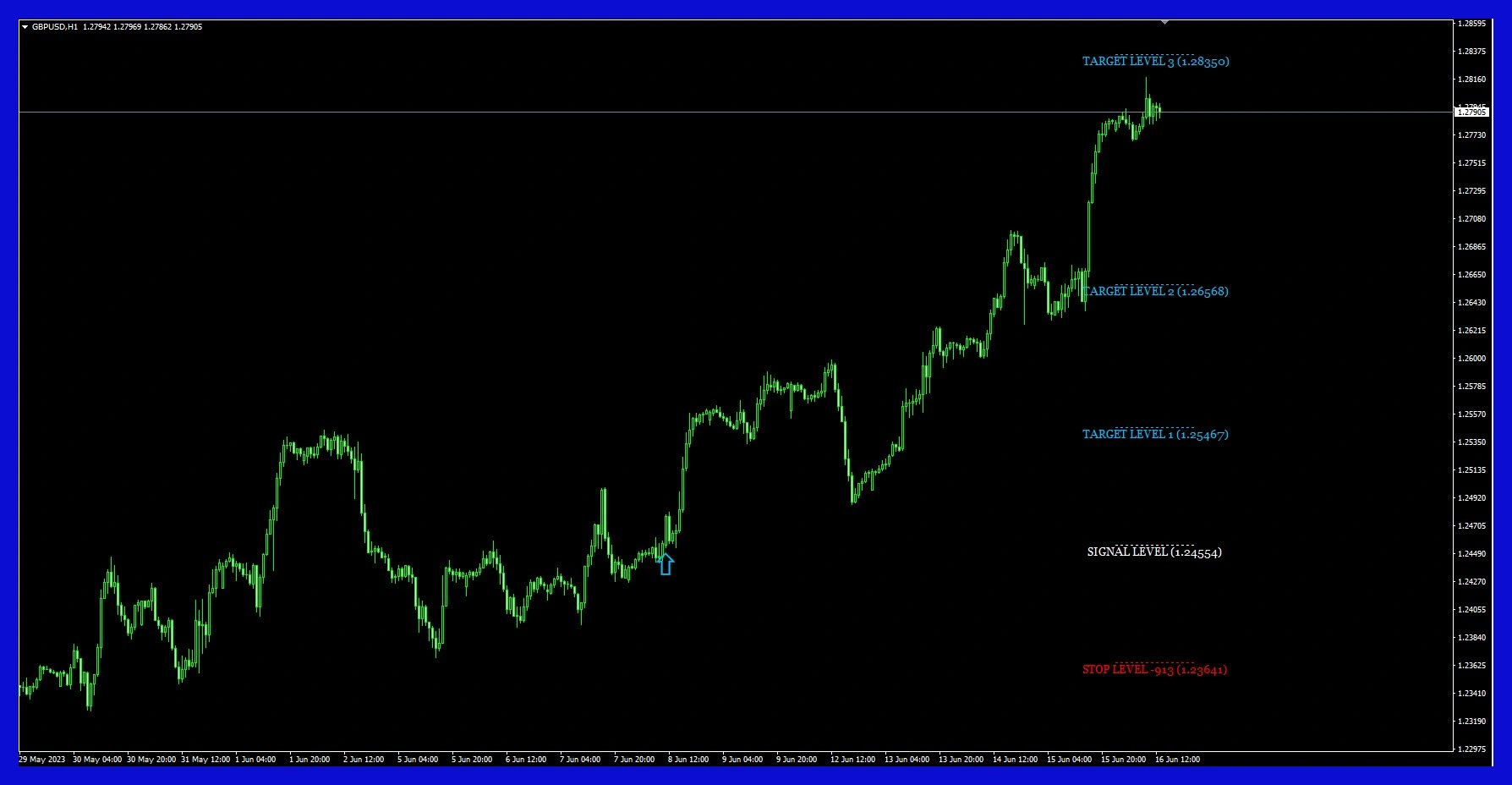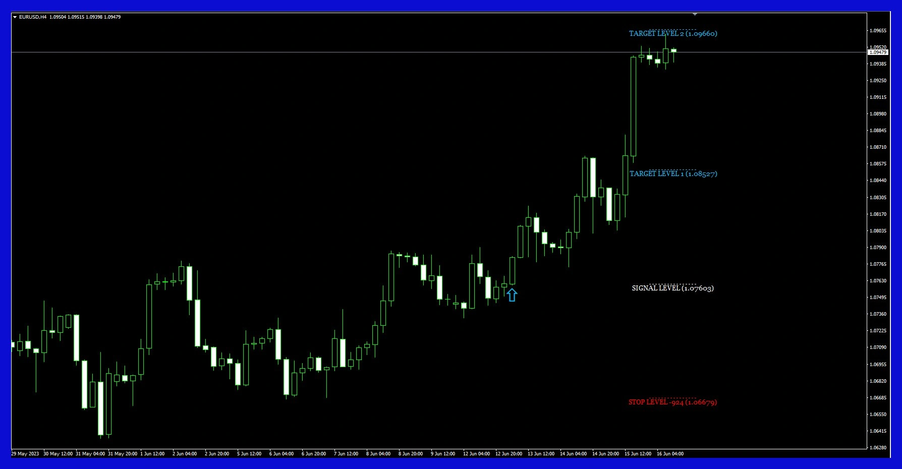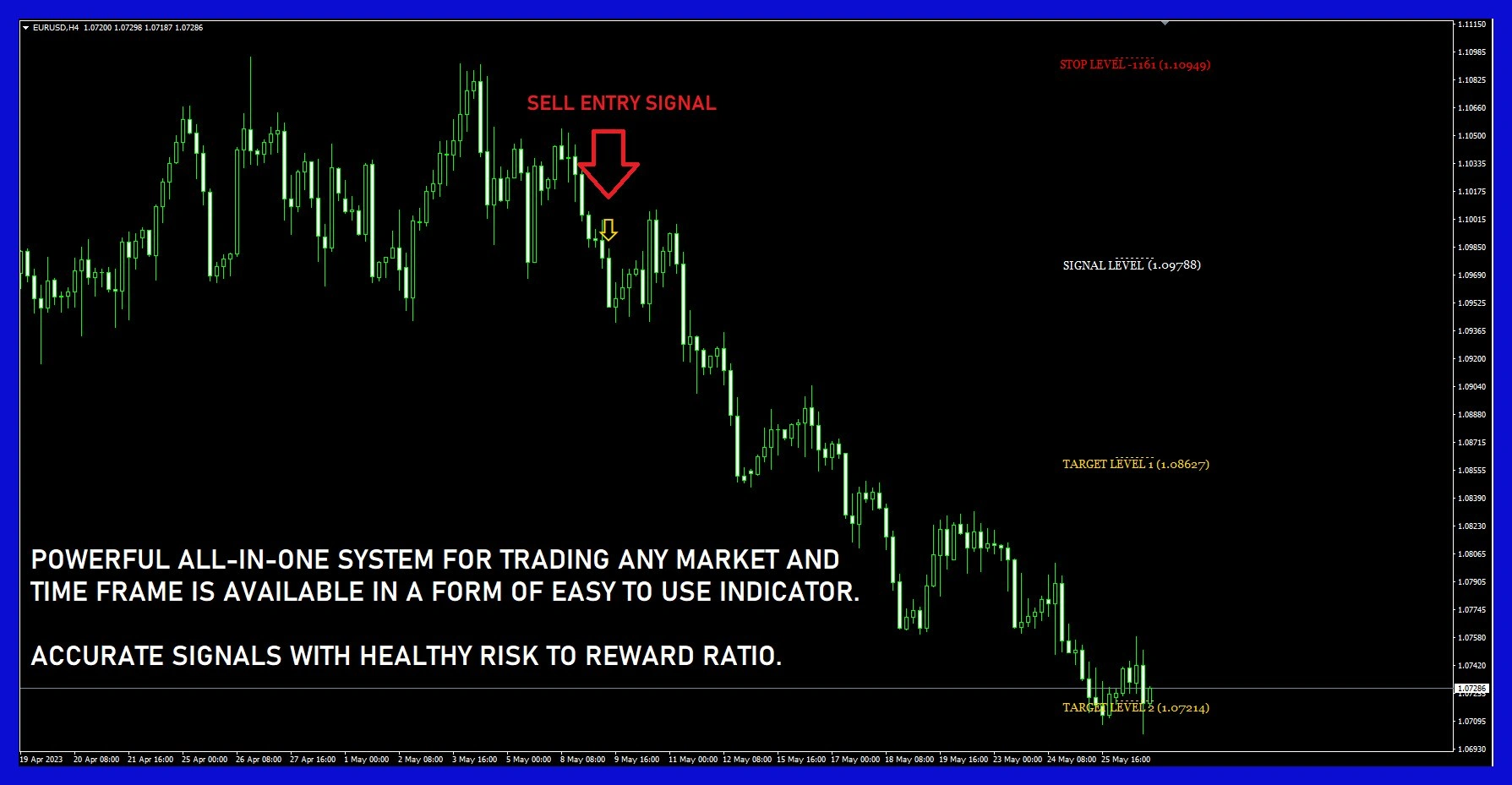 Trade signals appear directly on the chart, making it easier to spot potential entry points at the right moment.