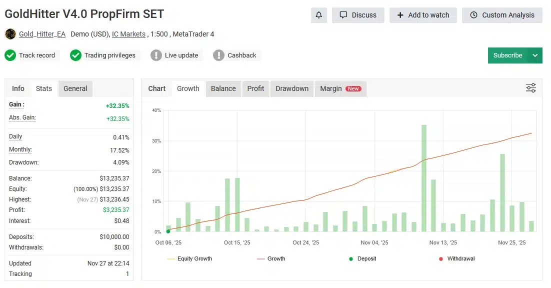 GoldHitter V4.0 PropFirm SET / Demo / 1:500 / MetaTrader 4 – Link