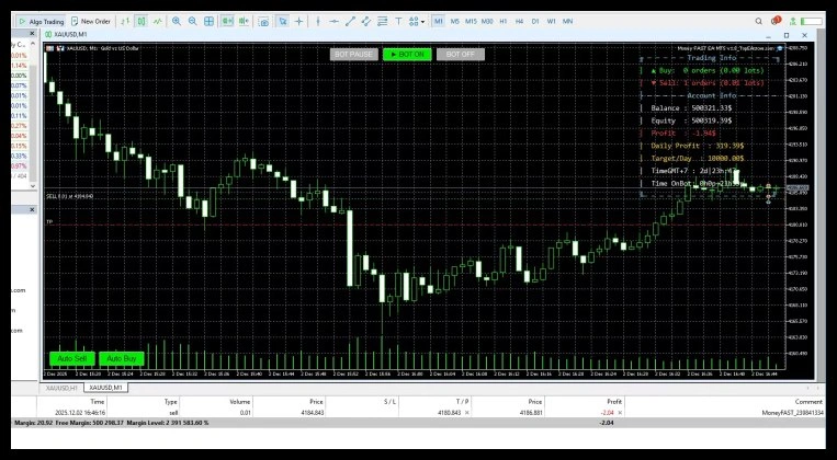 Money Fast EA is an automated trading bot (Expert Advisor) designed for the MetaTrader 5 (MT5) platform.