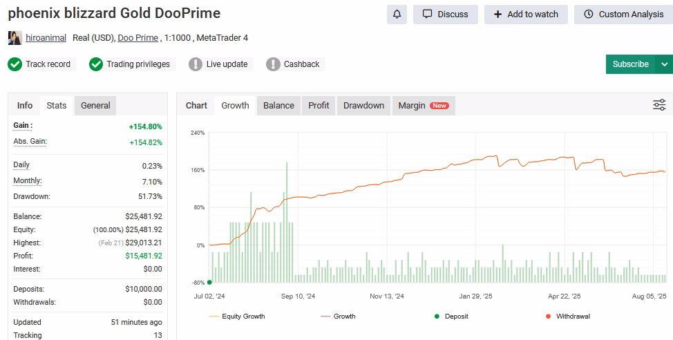 Yes. Phoenix Blizzard Gold EA does not use high-risk methods like Martingale or grid trading. It applies strict stop-loss and take-profit rules with a maximum drawdown under 17%, making it suitable for long-term trading. - What is the minimum capital required?