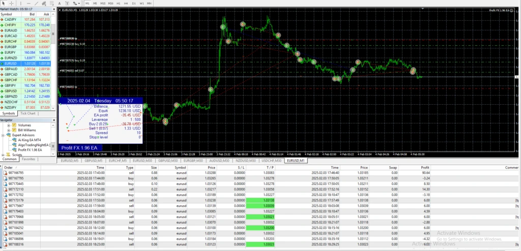 - Round-the-Clock Trading: Since the forex market runs 24/7, Profit FX EA allows traders to take advantage of opportunities at all hours, even when they’re not actively monitoring the market. This helps maximize potential profits without time restrictions.
