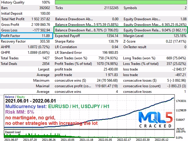 The EA employs intelligent filters to seamlessly adapt to different economic environments. Designed with user convenience in mind, it requires minimal setup, making it accessible to all traders. Focused on safety, it incorporates protective stop orders and avoids high-risk strategies like Martingale. For optimal performance, it’s recommended for currency pairs such as EURUSD and USDJPY across various timeframes.
