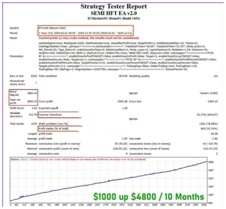 Performance data, execution logic, and key functional details are available to ensure full transparency. Most importantly, Semi HFT EA has been successfully tested and used on real trading accounts, demonstrating consistent and reliable profitability under live market conditions.