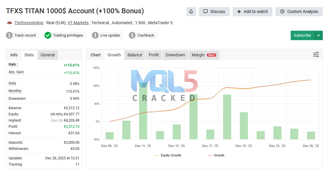 Below is a snapshot of the verified live trading results: Live Tracking
