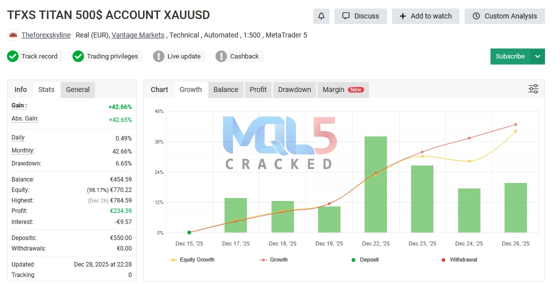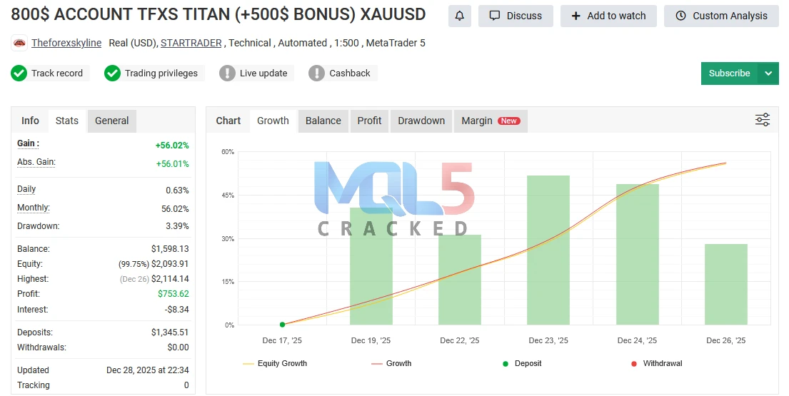 TFXS Titan Ultimate – Live Performance Overview (MYFXBook Verified)