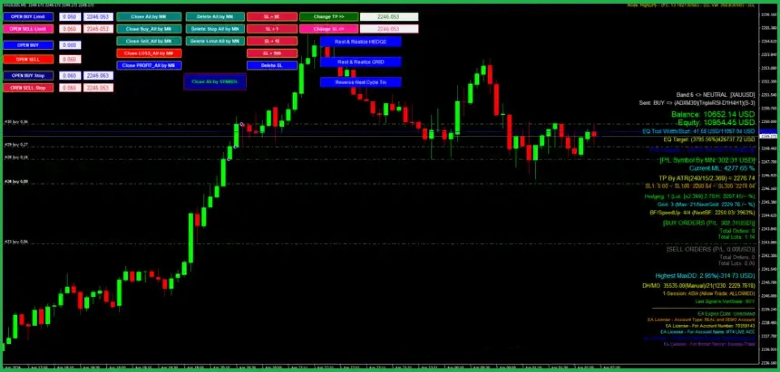 - Hedging with Lot Multiplication: capitalizes on reversals to secure profitable exits.